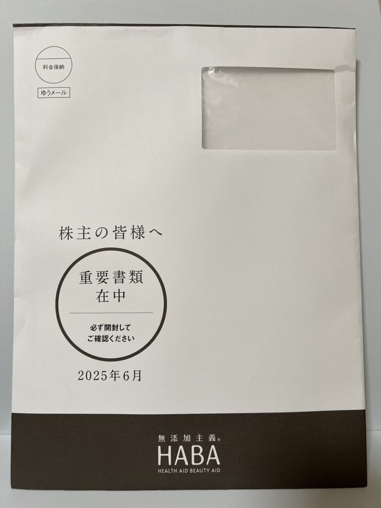 HABAさんから封筒が届きました。